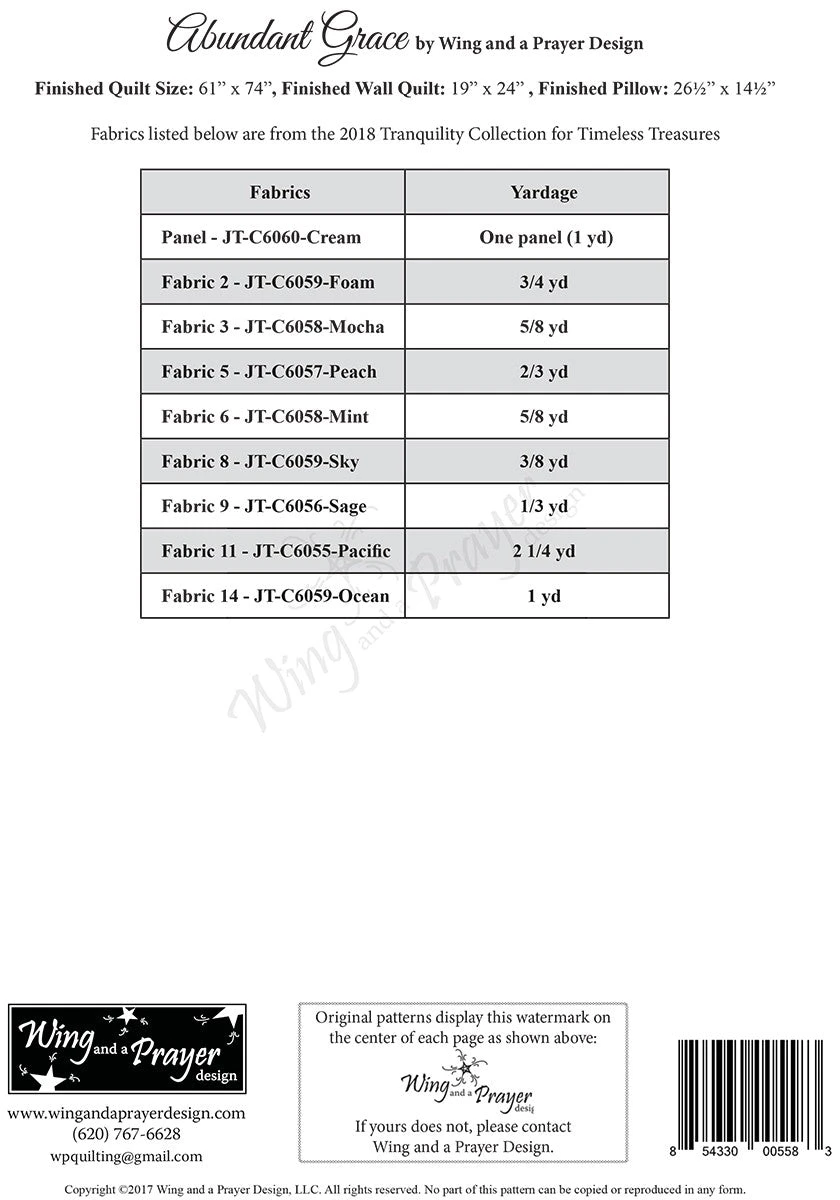 Using the Abundant Grace 1 yard panel from Timeless Treasures create a throw quilt 61in x 74in, wall quilt 19in x 24in, and pillow 26-1/2in x 14-1/2in, that will warm your soul.