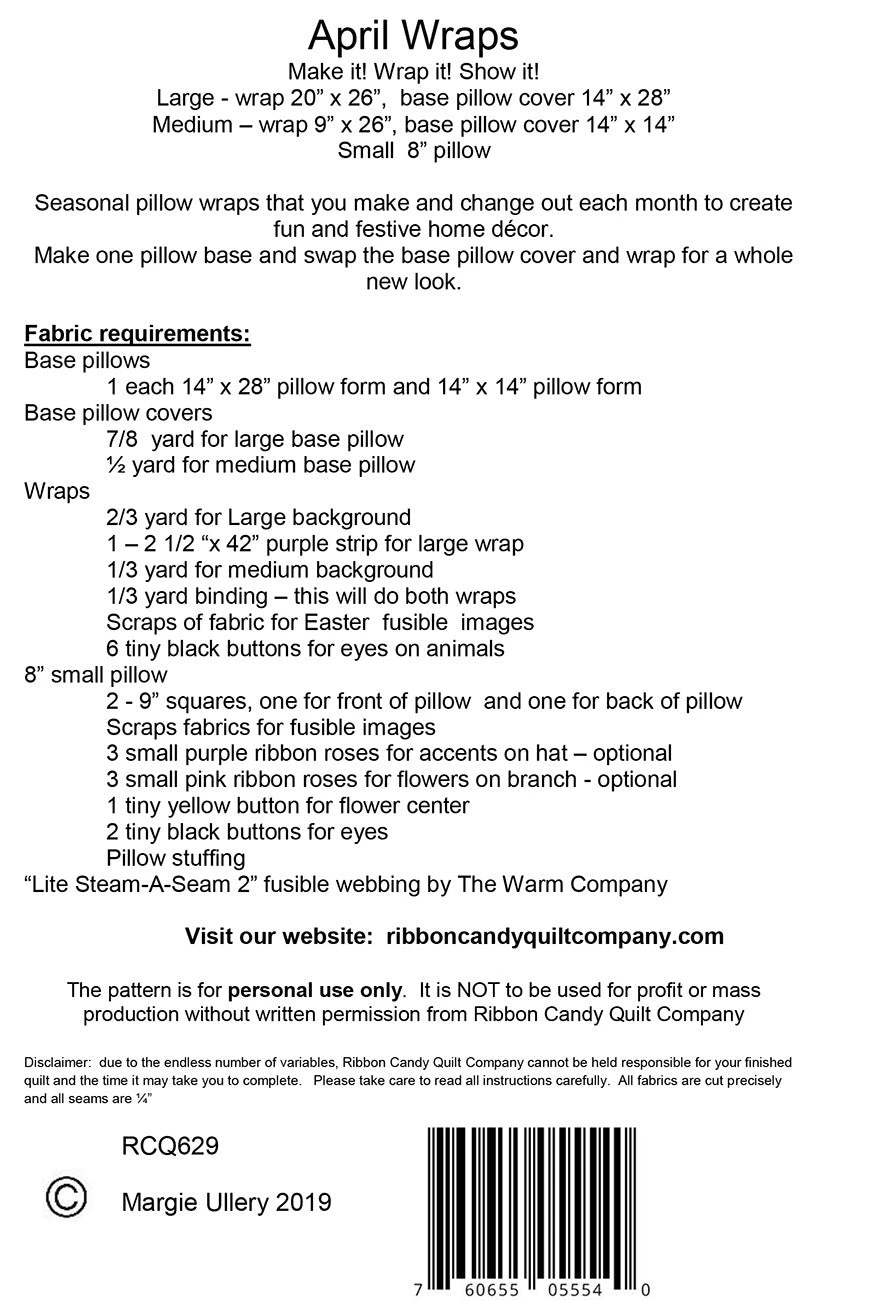 April Wrap set is just perfect to celebrate Easter. Large pillow is 14 x 28 inches with the wrap finishing 20 x 26 inches. The medium pillow is 14 inch square with the wrap measuring 9 inches wide and 26 inches long. Small pillow is 8 inch square. The large and medium are perfect sizes for benches, chairs, and sofas. The mini pillow is just right to use in a basket and or add to a shelf. These make great gifts too. All images are appliqued with fusible webbing.