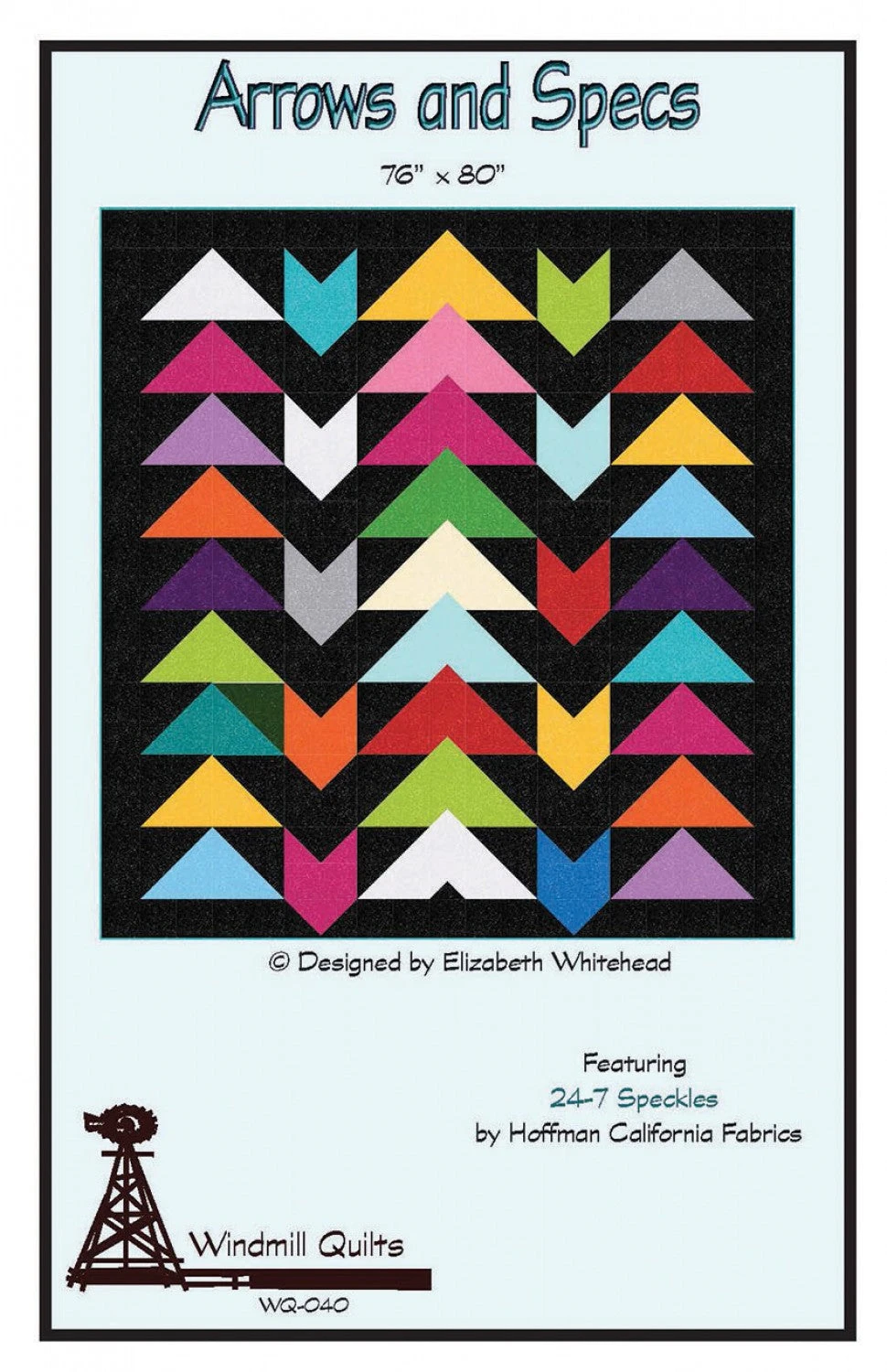 Arrows and Specs is a traditionally pieced quilt featuring Hoffman’s 24/7 Speckles fabric line in a modern style.