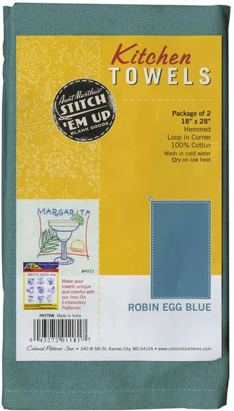 Solid Dye Kitchen Towel 2 Per Package. Made from a 100% plain-woven cotton with a 4-sided hem and hanger loop in the corner. Towel measures 18×28 inches. Wash in cold water; dry on low heat; some shrinkage will occur.