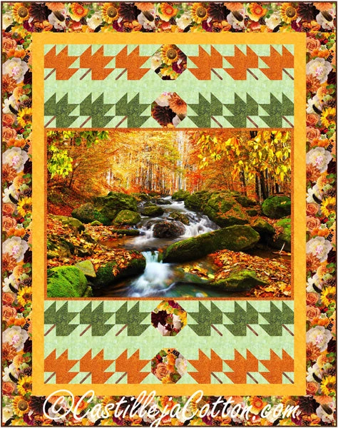 Easy to make panel lap/throw quilt with leaf blocks. Quick half square triangle instructions are included in pattern.