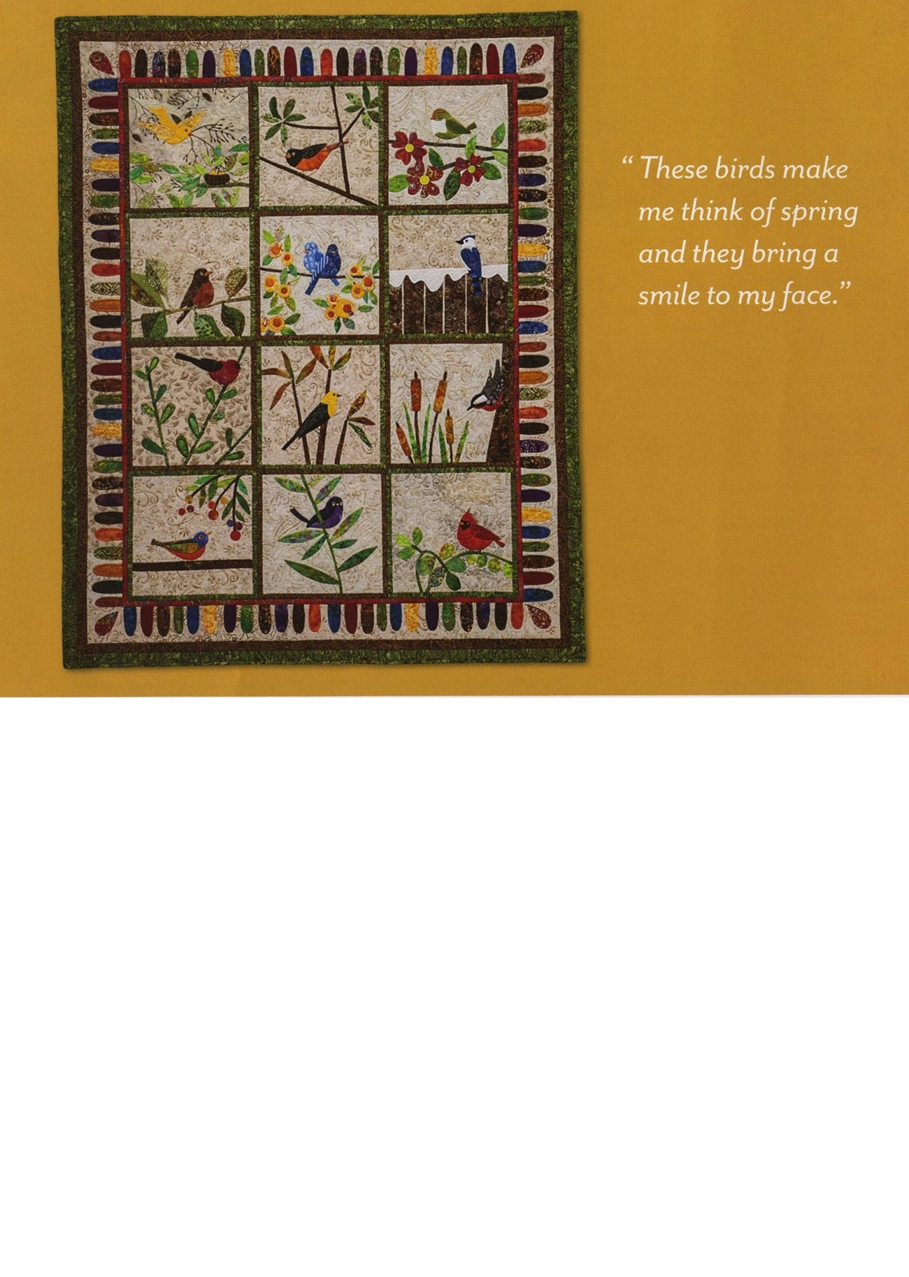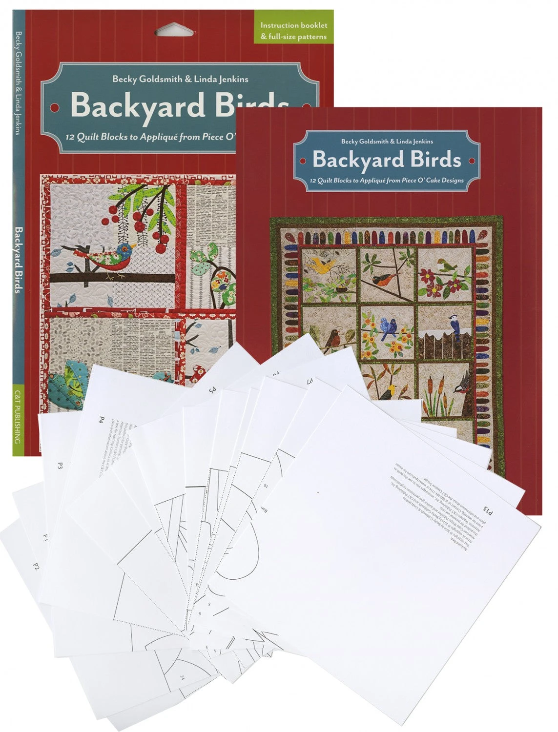 Applique lovers, youll want to make all 12 of these endearing blocks featuring robins, cardinals, orioles, and other feathered friends from the back yard. Designed in the lively Piece O Cake style by Linda Jenkins and Becky Goldsmith, these blocks are bursting with fresh colors and are easy enough to be fun for stitchers of all levels. Pattern pack includes a 16-page instruction booklet and full-size patterns for 12 blocks, plus applique borders, that make a 52 x 65 quilt and instructions for a 4 block 39in x 39in quilt. Or mix and match your favorite blocks to perk up quilts, pillows, tote bags, or apparel.
