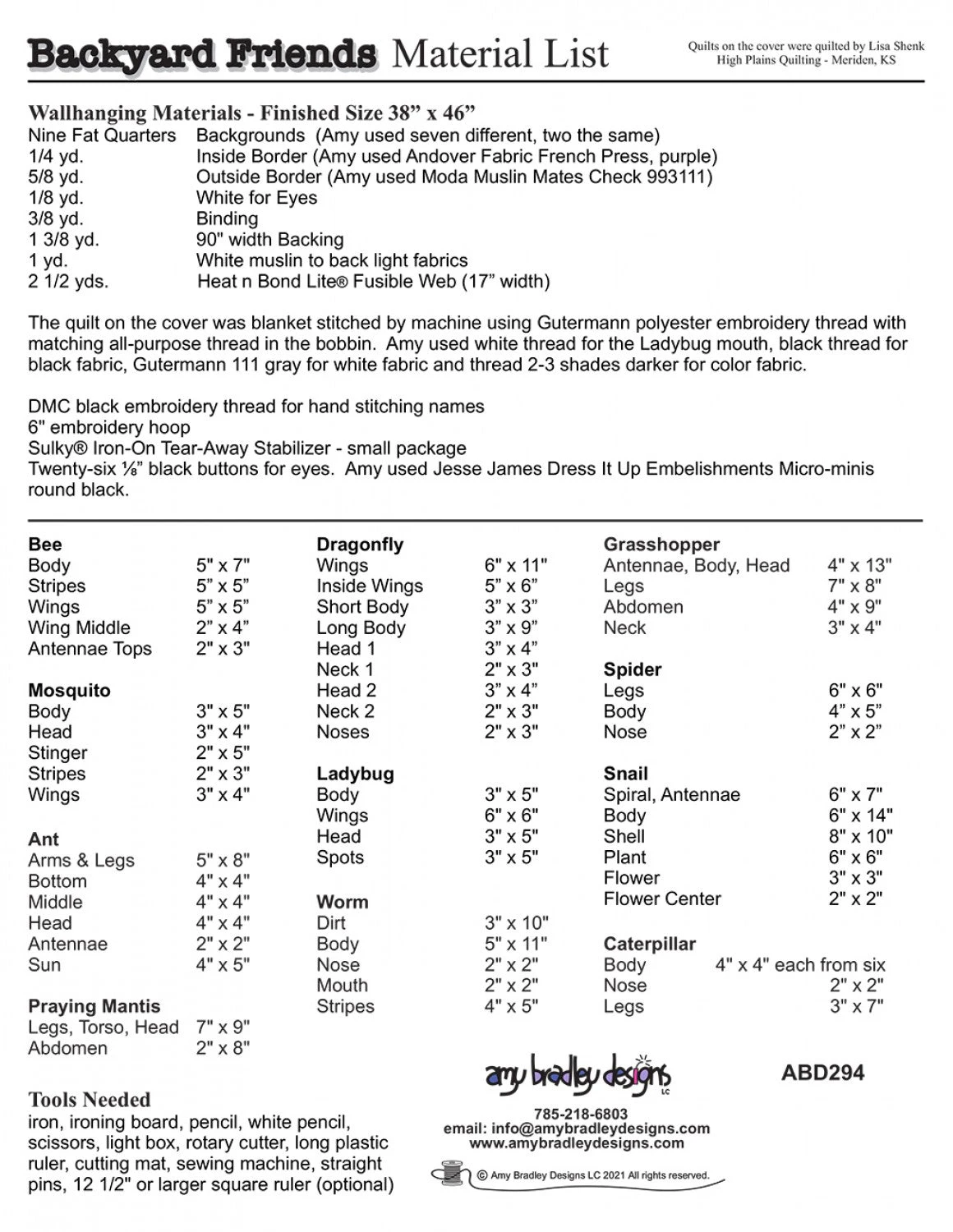 Backyard Friends quilt pattern includes full size patterns, placement sheets, and instructions to make this 38″ x 46″ wall hanging quilt. The technique is fusible applique.