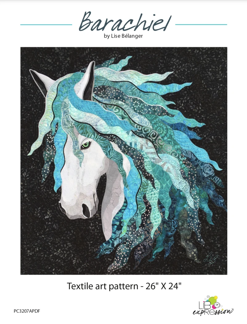 This horse art quilt pattern is made with the technique of raw-edge fused appliqué.