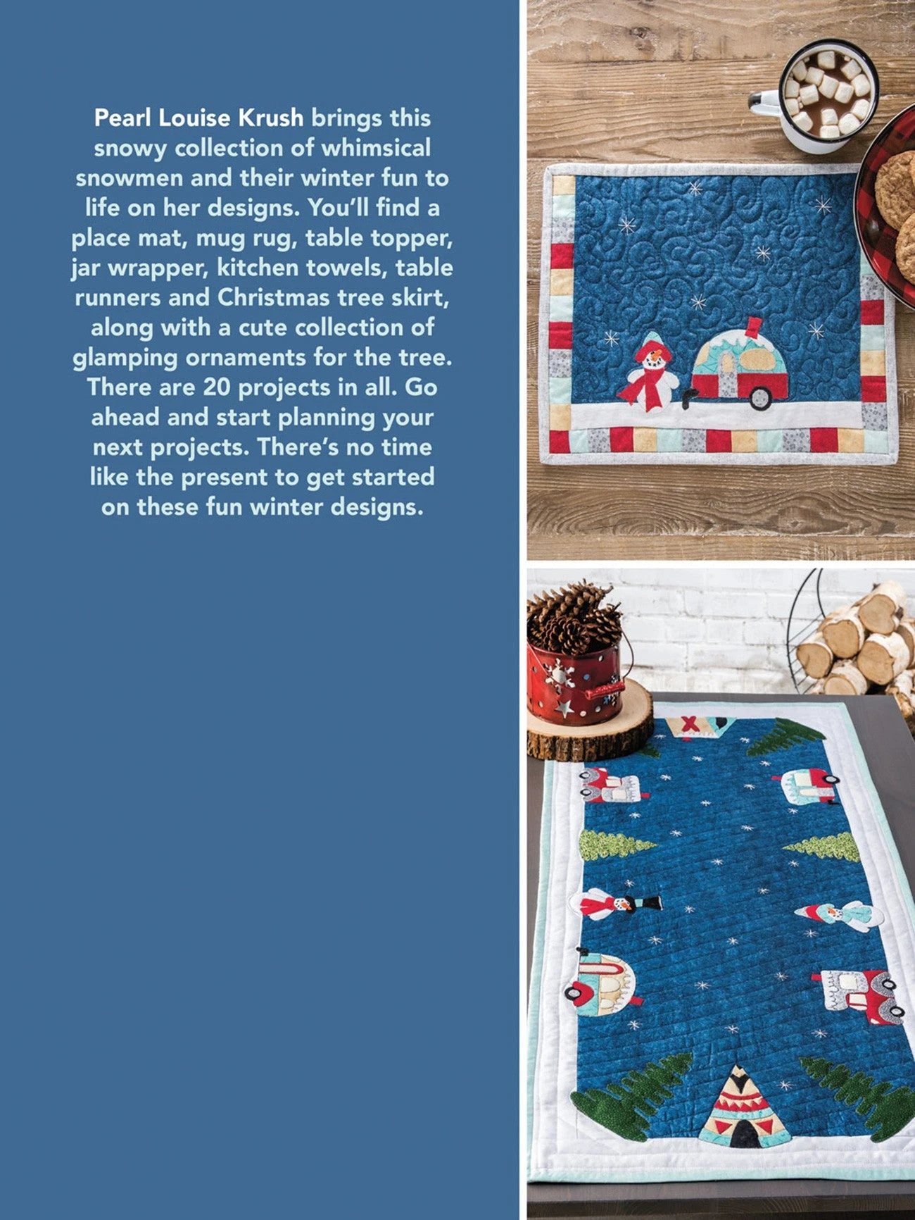 Pearl Louise Krush brings this snowy collection of her whimsical snowmen and their winter fun to live on her designs. You’ll find table toppers, runners, placemats and pot holders along with a cute collection of glamping ornaments for the tree. Now don’t forget the tree skirt. Twenty projects in all. Go ahead and start planning your next projects. Theres no time like the present to get started on these fun winter projects.