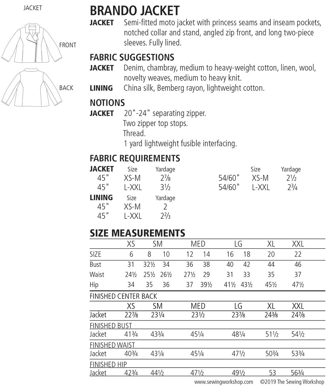 Notions: 20″” – 24″” separating zipper, two zipper top stops, thread, 1 yard lightweight fusible interfacing.