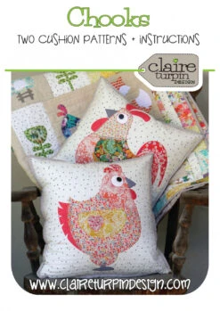 18in – Pattern includes applique instructions for two adorable chook cushions!