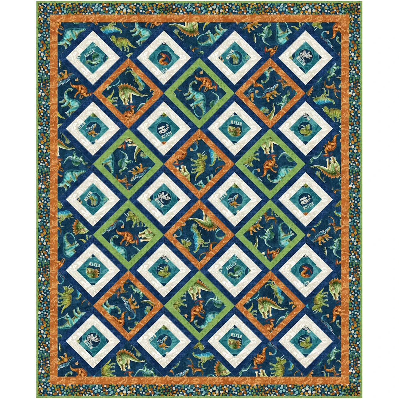 Size 41 ¾” x 51″ Child’s Quilt designed with Dino Roar Collection by Northcott, The Warm Company Batting & Aurifil Thread.