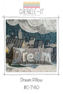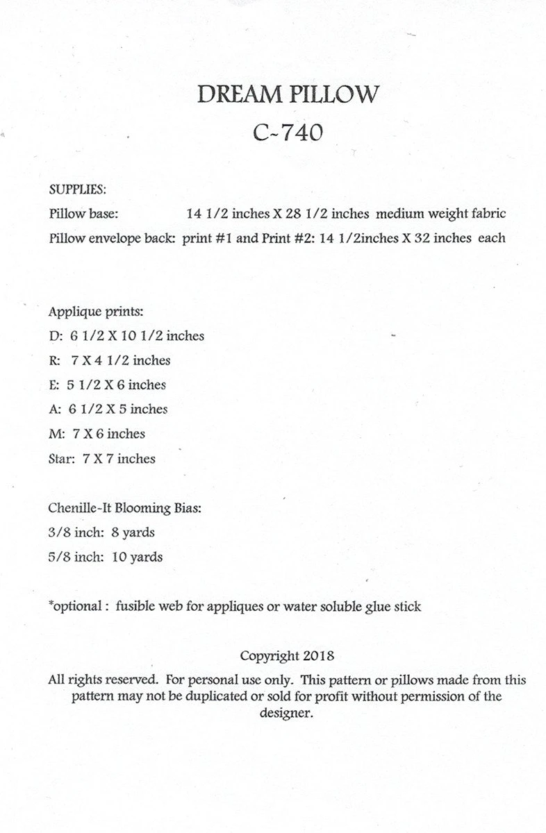 Dream applique pillow with appliques and edges finished with Chenille-It Blooming Bias.