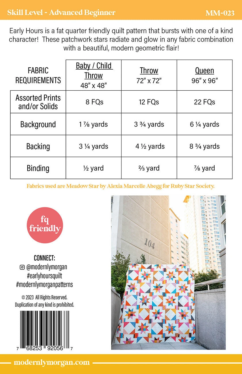 Early Hours is a fat quarter friendly quilt pattern that bursts with one of a kind character!