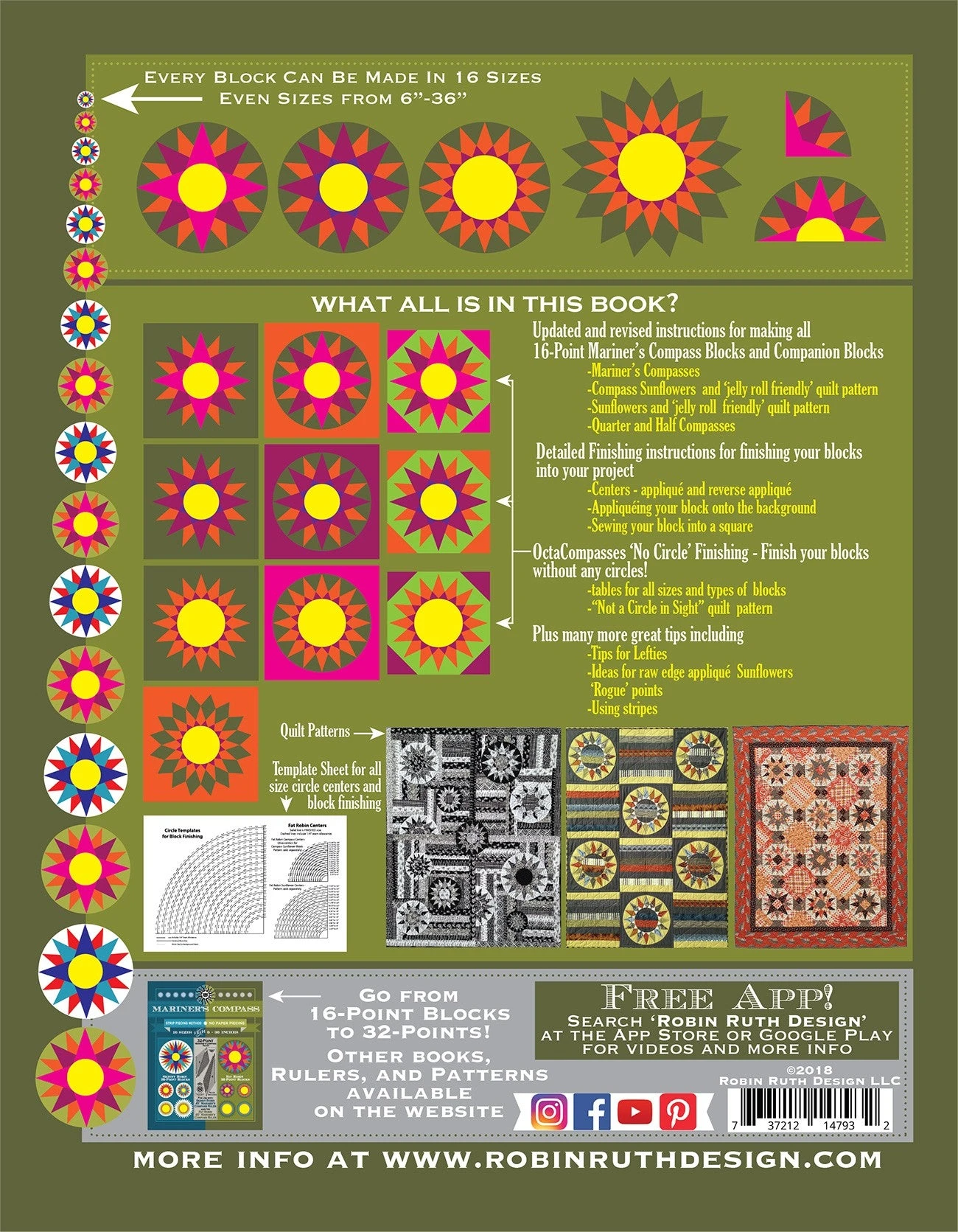 Revised and Updated! This set includes the original mariner’s compass book and ruler combo, plus the companion booklet, OctaCompass info and so much more! Strip Piecing method with no paper piecing. Sixteen sizes from 6in to 36in.