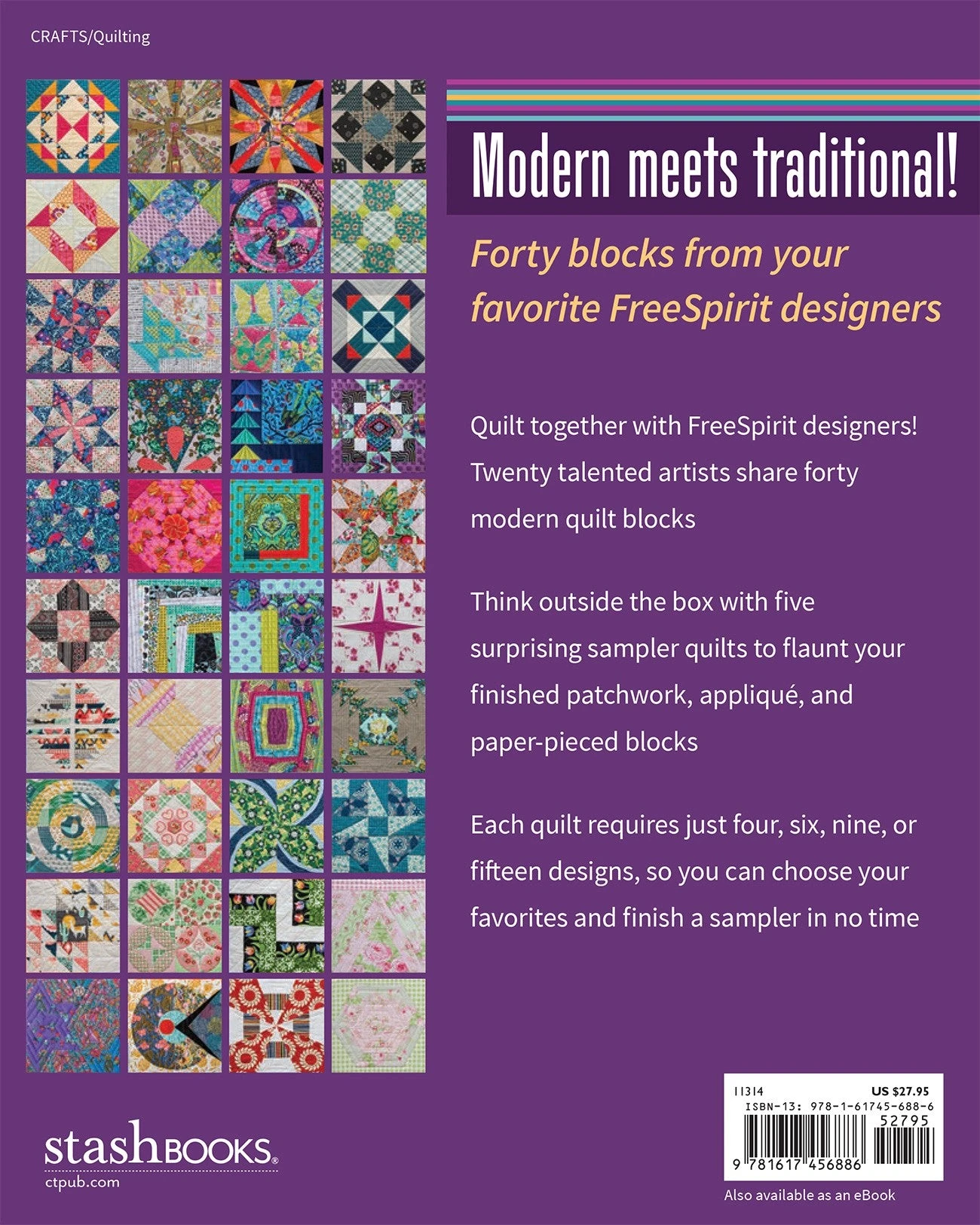Your favorite FreeSpirit designers were challenged to put a modern spin on classic blocks! Sew forty quilt blocks from twenty celebrity designers, plus five beautifully bold sampler-quilt projects.