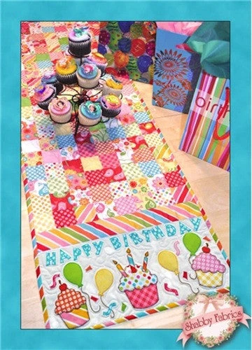 Celebrate a birthday with this colorful table runner! Patchwork can be made using a jelly roll, and each end features fusible applique. Pattern includes all instructions for the 16 1/2 x 64 1/2 runner (which can be shortened to fit your table).