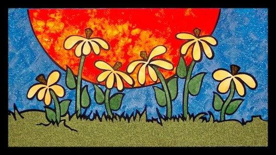 This technique of fusing colored fabrics onto a layer of black fabric, really is as quick and easy as it sounds! Beginners gain confidence and veteran quilters are amazed at the ease of construction.13� x 25�