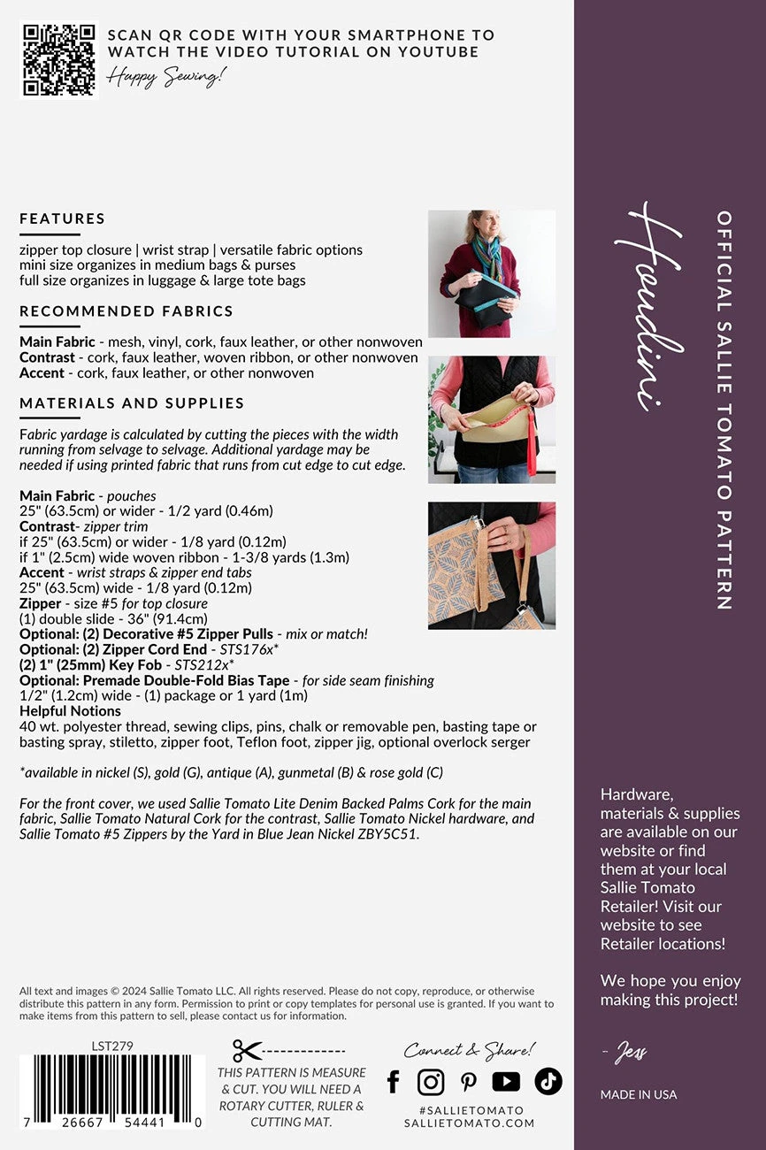 A practical pouch with a fun twist to the zipper makes a magical combination. The master illusionist, Harry Houdini, inspired the name of this pouch pattern featuring an unusual zipper closure. You’ll be amazed how easily this project comes together, and it’s perfect for Sallie Tomato Zippers by the Yard!