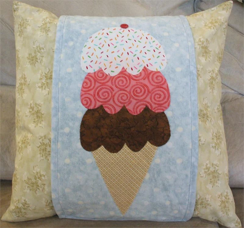 Enhance your decor with an ice cream pillow wrap. The Ice Cream Cone pillow wrap pattern is fun and easy. Snaps on either end of the wrap making it easy to put on and off the pillow. Make a wrap for all the seasons and holidays on the calendar!