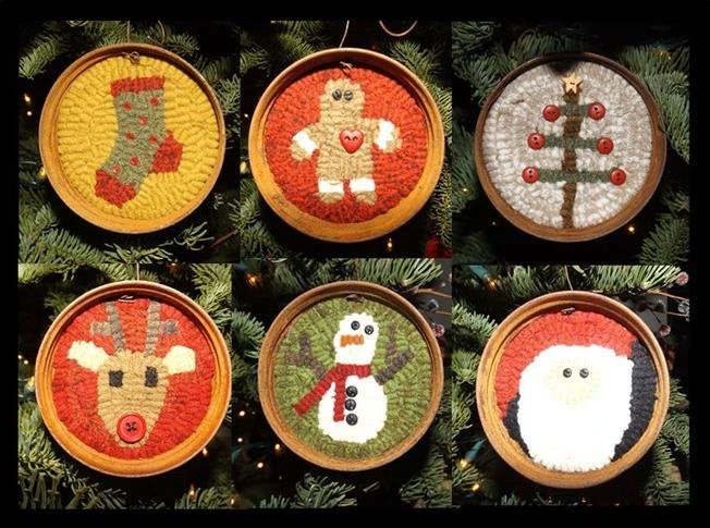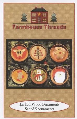 Set of 6 Wool Hooked Ornaments in a Rusty Mason Jar Lid
