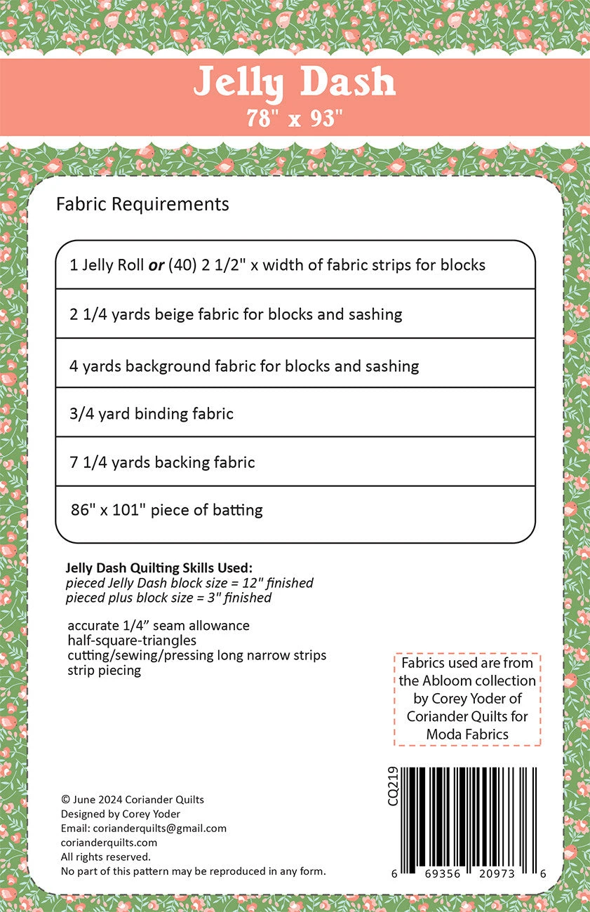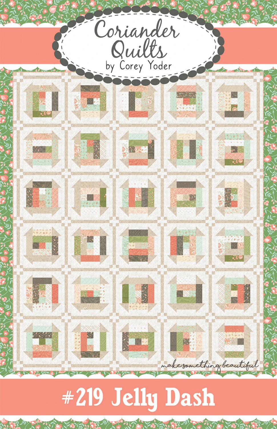 The cover quilt features the Abloom fabric line by Corey Yoder of Coriander Quilts for Moda Fabrics.
