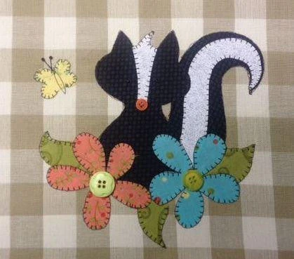This applique design can be put on a tea towel like the directions instruct or used as a quilt square, appliqued pillow or any project that your imagination can think up. Let your imagination go! This cute little fox would also be cute on a sweatshirt or on a placemat. The flowers have button centers. So cute!