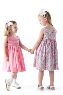 Mary De is the classic wrap-in-the-back sundress and jumper creating a V-back. The dress fastens with two buttons, and the bodice is lined. In addition to the original smocked dress, Mary De can also be made with a smocked insert or unsmocked with a plain front bodice. Our easy-to-follow smocking instructions will make this your favorite smocking project. The unsmocked version is great for beginners and the smocked versions are for more advanced sewers.