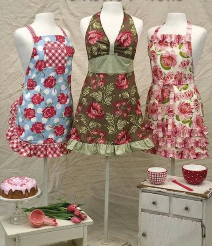 Cindy says, “Aprons are a great way to show off your favorite fabrics and personality…not to mention keeping your clothes clean while you cook.” Tracy likes to wear an apron while sewing and/or quilting too. Apron pockets are a great place to keep essential tools & small gadgets handy…and help keep lint & threads off your clothes.