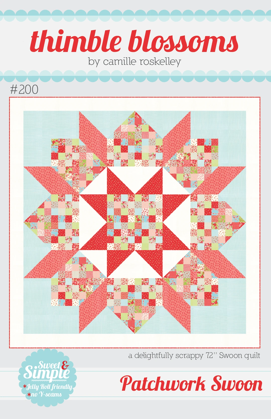 Inspired by our popular Swoon quilt, this one is one large patchwork block made from a Jelly Roll. 72″ x 72″