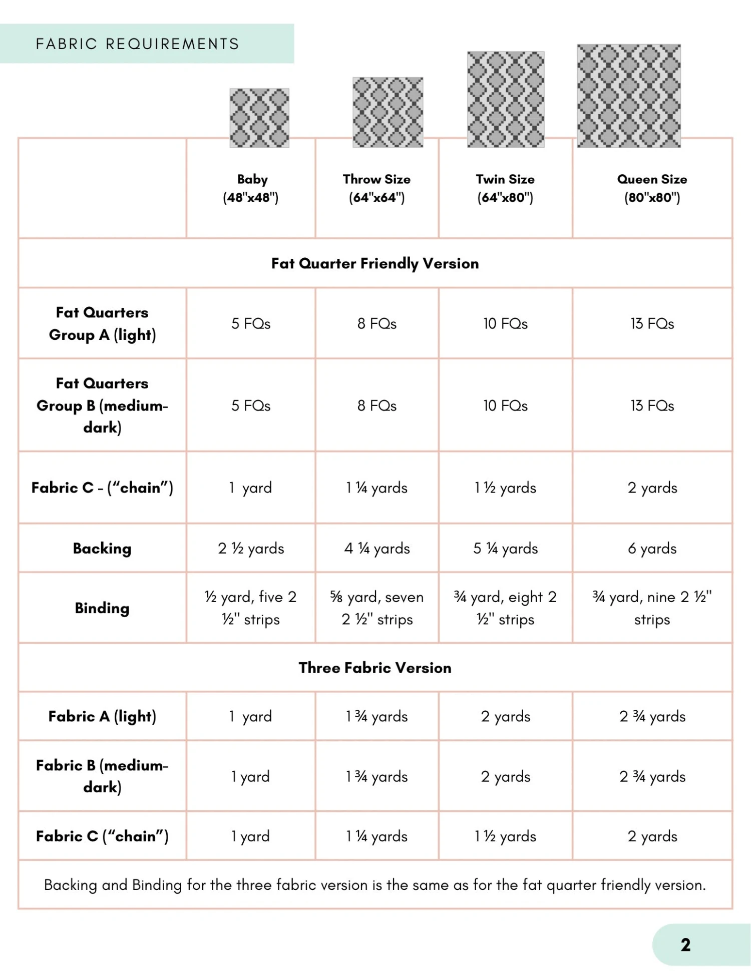 This versatile design includes four quilt sizes (Baby, Throw, Twin, and Queen) with multiple layout options to customize your project.
