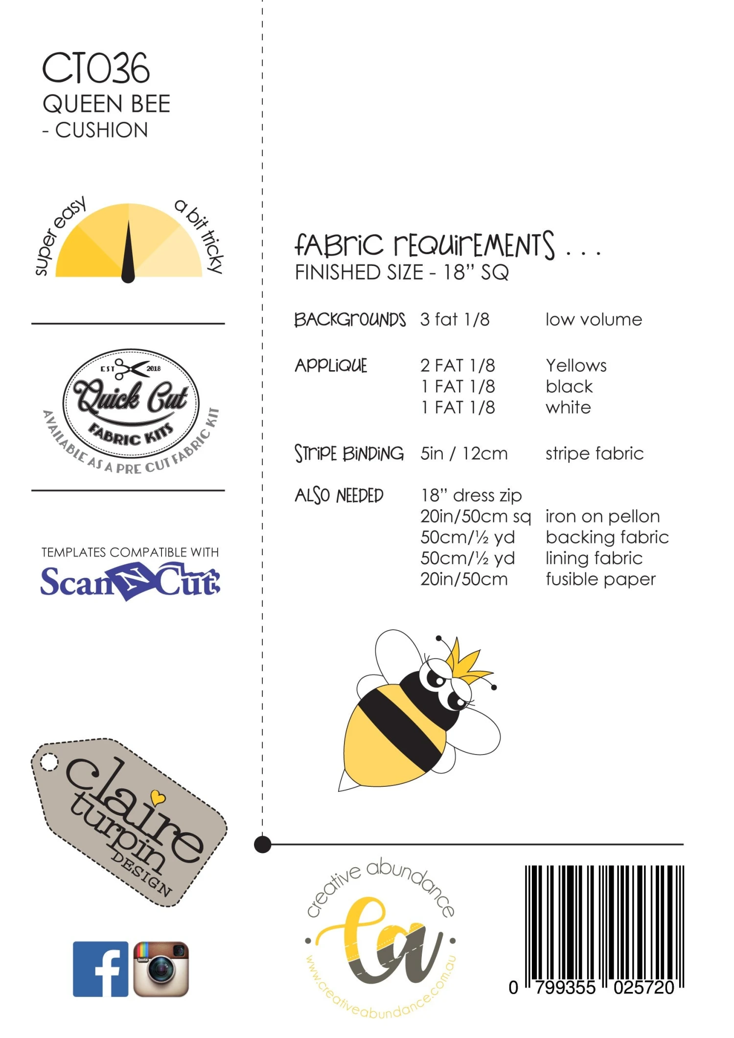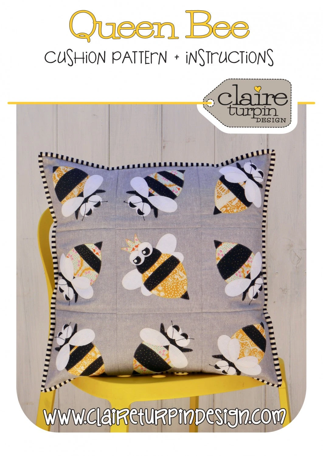 Queen Bee applique cushion pattern This one is for the medium skilled sewist Finished Size:18″ Square