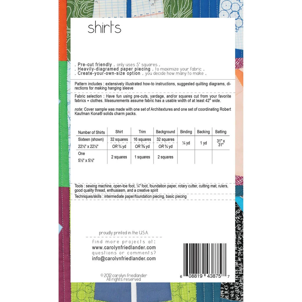 Pattern Includes: Illustrated how-to instructions, suggested quilting diagrams, directions for making hanging sleeve