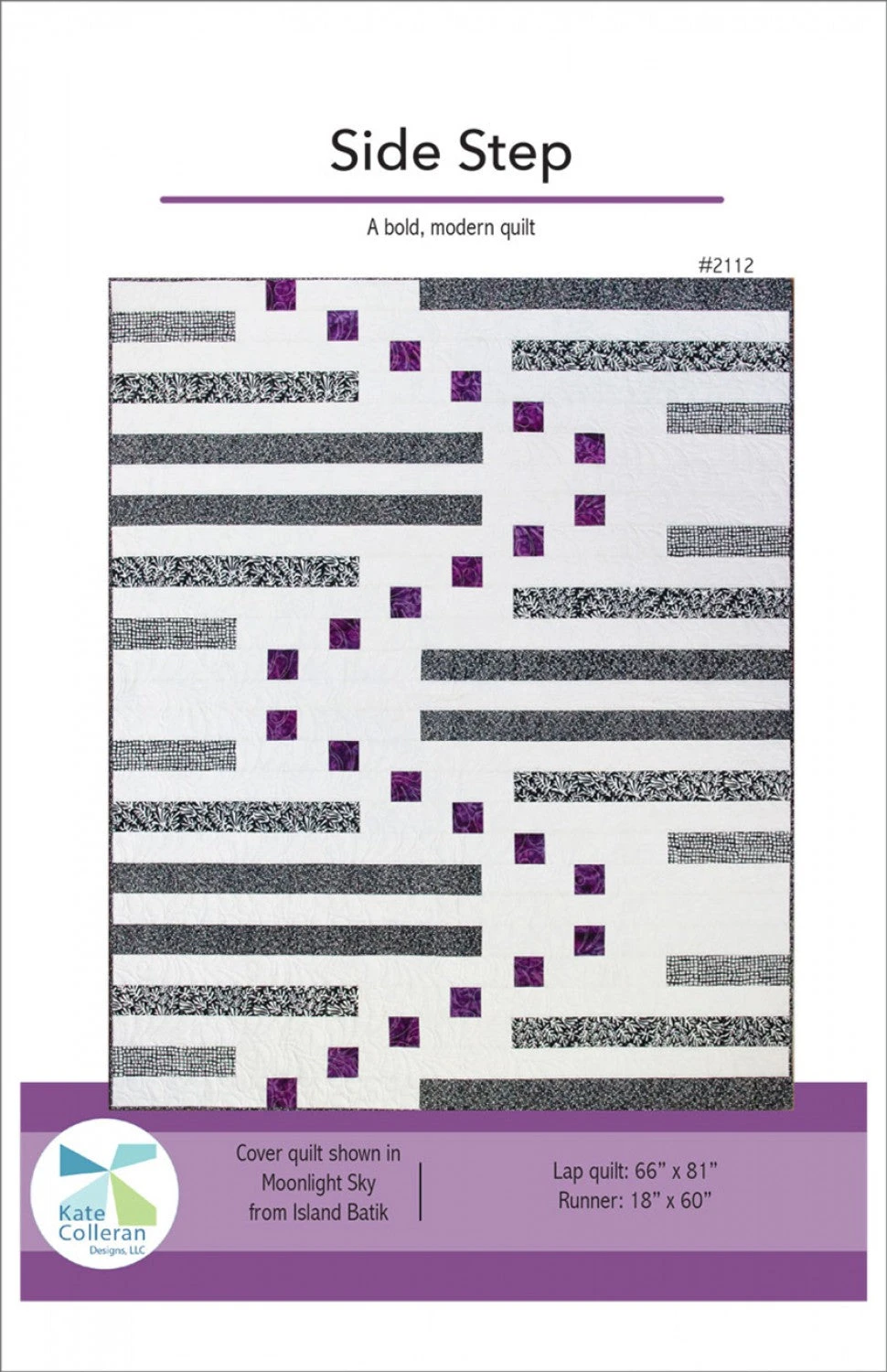 A bold modern strip quilt. Cover quilt shown in the Moonlight Sky line from Island Batik. Instructions for Lap quilt: 66in x 81in, and Table Runner: 18in x 60in