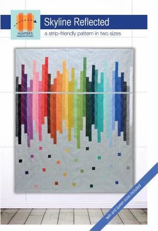Skyline Reflected is a modern strip- based quilt in two sizes (Twin and Queen). The layout is carefully patterned to look improvisational, making for an easy and fool-proof layout. Use your favorite strip pack to make this stunning quilt!
