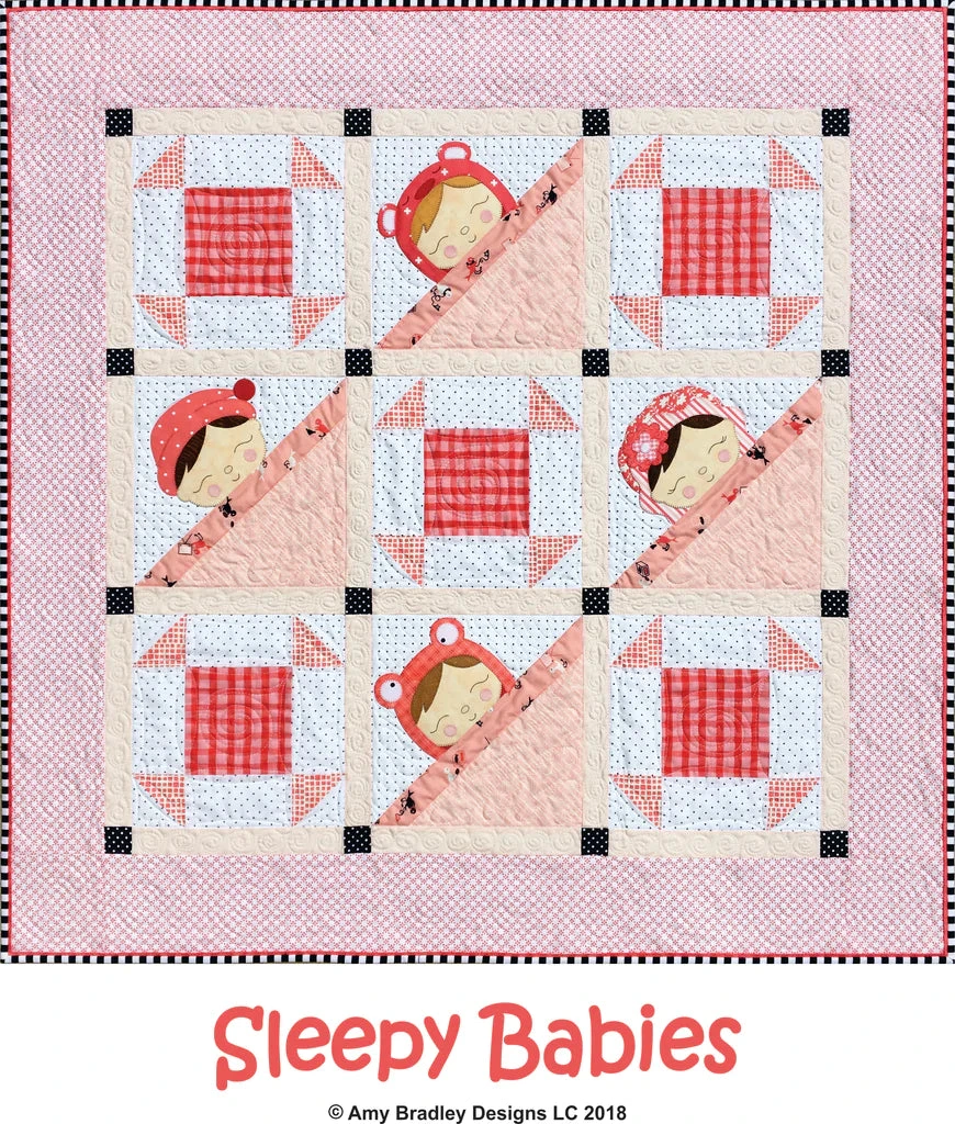 leepy Babies Quilt download pattern includes instructions with photos, full size patterns, and placement sheets to make both a 45″ x 45″ Nine Block Baby Wallhanging quilt and a 45″ x 45″ Four Baby with Pieced Blocks Wallhanging quilt.