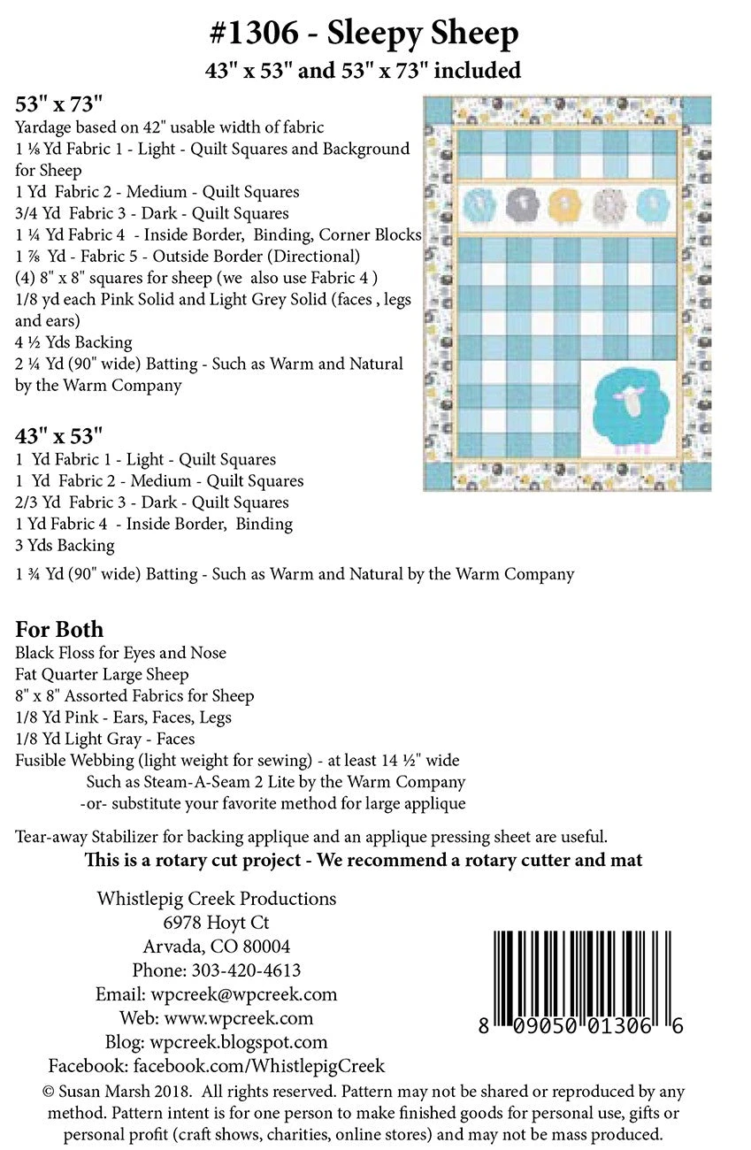 This cute baby quilt is available in two sizes: 53″ x 73″ and 43″ x 53″. Simple applique and easy piecing make this a fun project for the confident beginner.