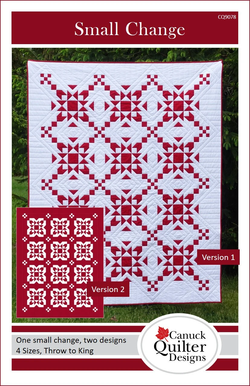 Just one small change yields two designs in one pattern. The blocks are identical in both versions but changing the colour of the sashing and borders results in a different overall design, one with a modern vibe and the other more traditional.