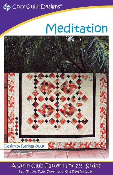 We often believe that quilting is great therapy. Now with our Meditation pattern, you can create your own little piece of Zen with 2-1/2in strips! Just add an accent fabric, background and borders, and that peaceful state of enlightenment can be yours. Lap, Throw, Twin, Queen, & King