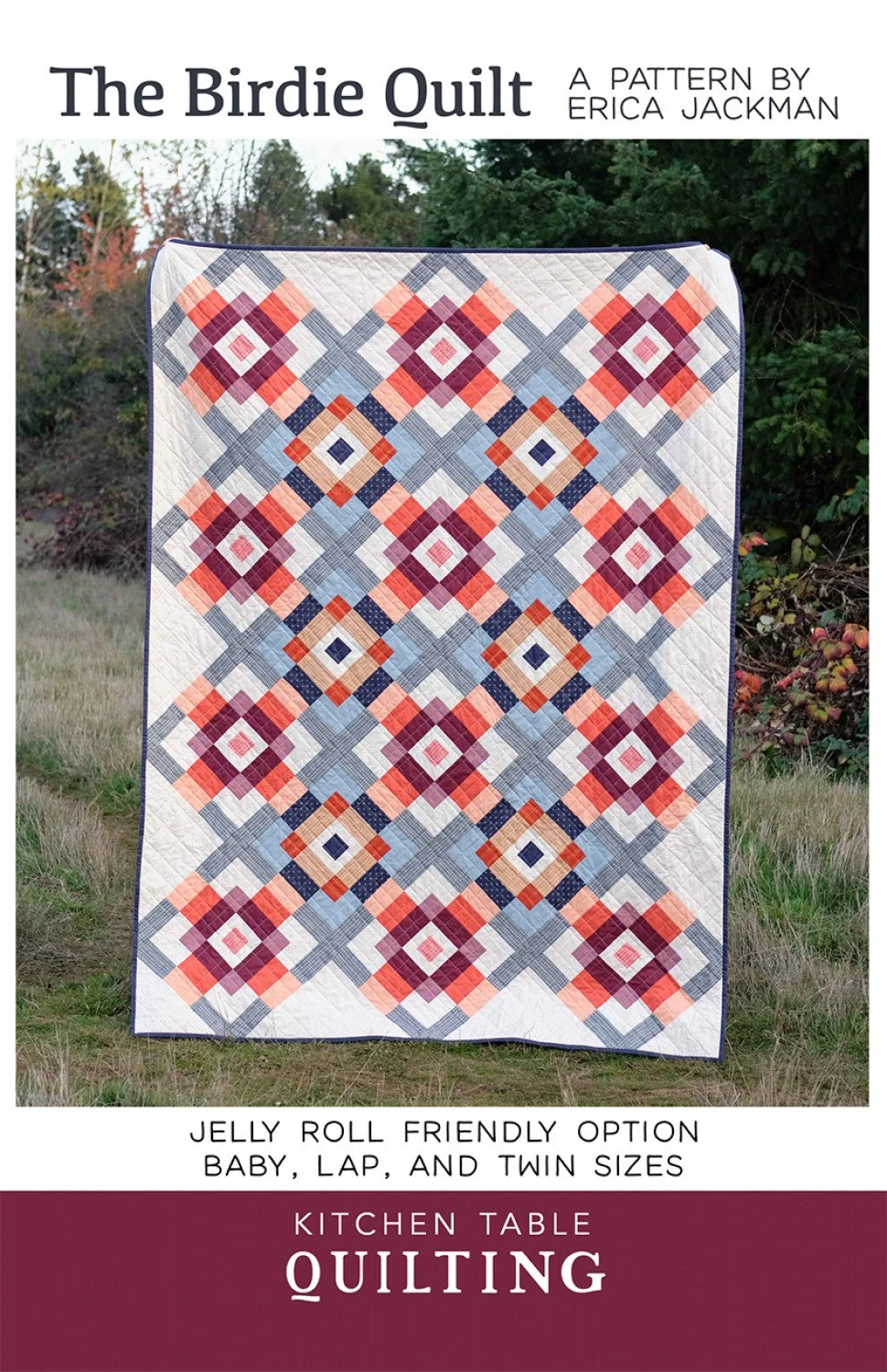 The Birdie Quilt Pattern is a great, unique way to show off your favorite fabrics and has the option to use a jelly roll The pattern includes instructions for baby size (40″ x 40″), lap size (59″ x 79″), and twin size (79″ x 99″) quilts.