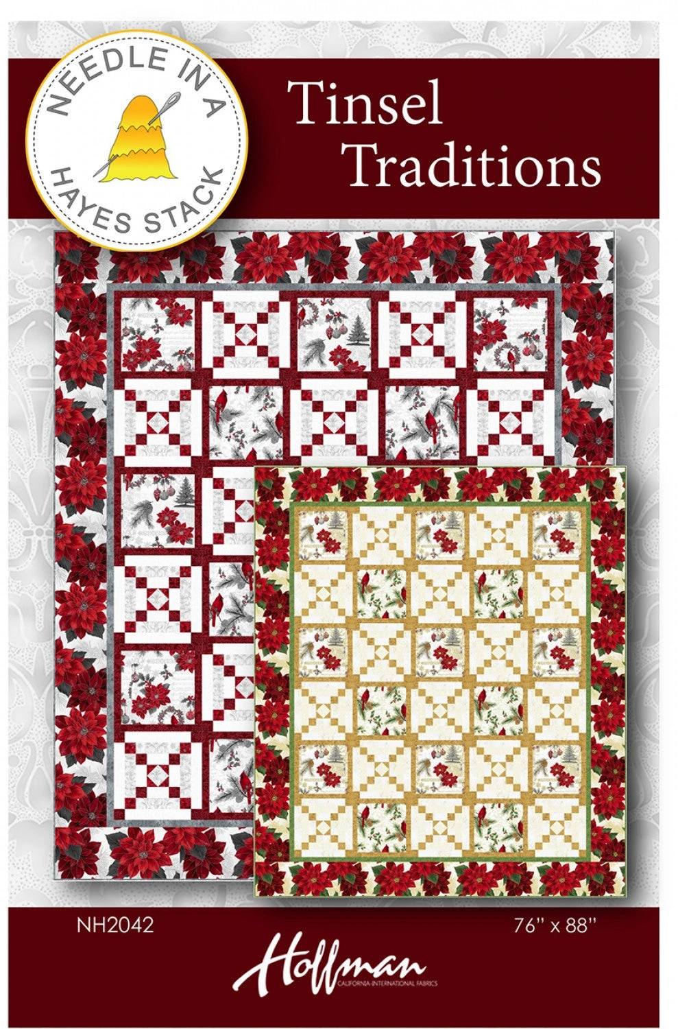 This pattern is designed with Joyful Traditions by Hoffman Fabrics. The big beautiful poinsettias are displayed in the border of this lovely quilt. The quilt finishes at 76″ x 88″.