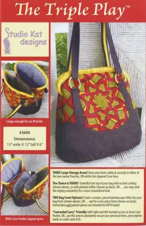 Pattern pieces & instructions are included for BOTH options. TWO Bag Front Options: Create a unique, pieced kaleidoscope effect for your bag front or¦ opt for a one-piece front. Pattern pieces & instructions are included for BOTH options. Concealed Carry� Friendly: with right or left-handed access to inner Core pocket, OR¦use this area to absolutely secure your personal items, prescription medications or credit cards & ID. 13in Wide x 12in Tall x 6in