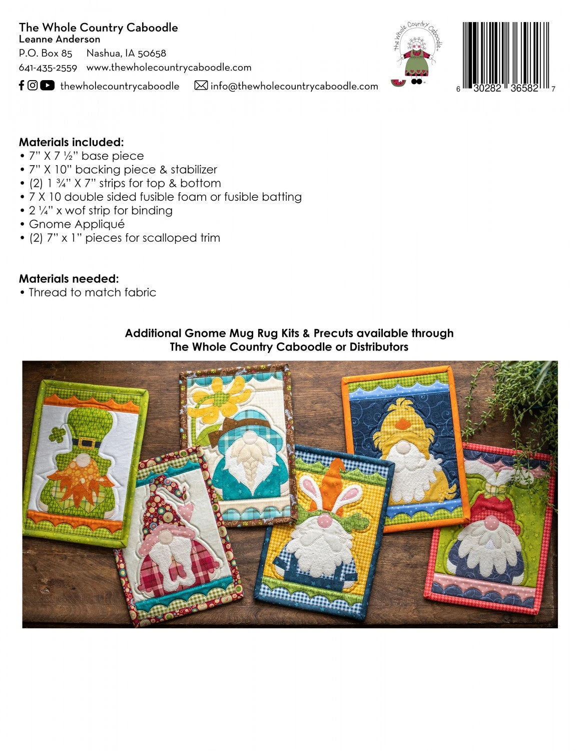 Valentine Gnome Mug Rug Kit includes all of the fabric and notions you need to make one mug rug along with a precut fused gnome cut out and ready to assemble!! All you need is thread and a small amount of time. Great to make as a gift, give the kit as a gift to someone who loves to sew, or keep for yourself!