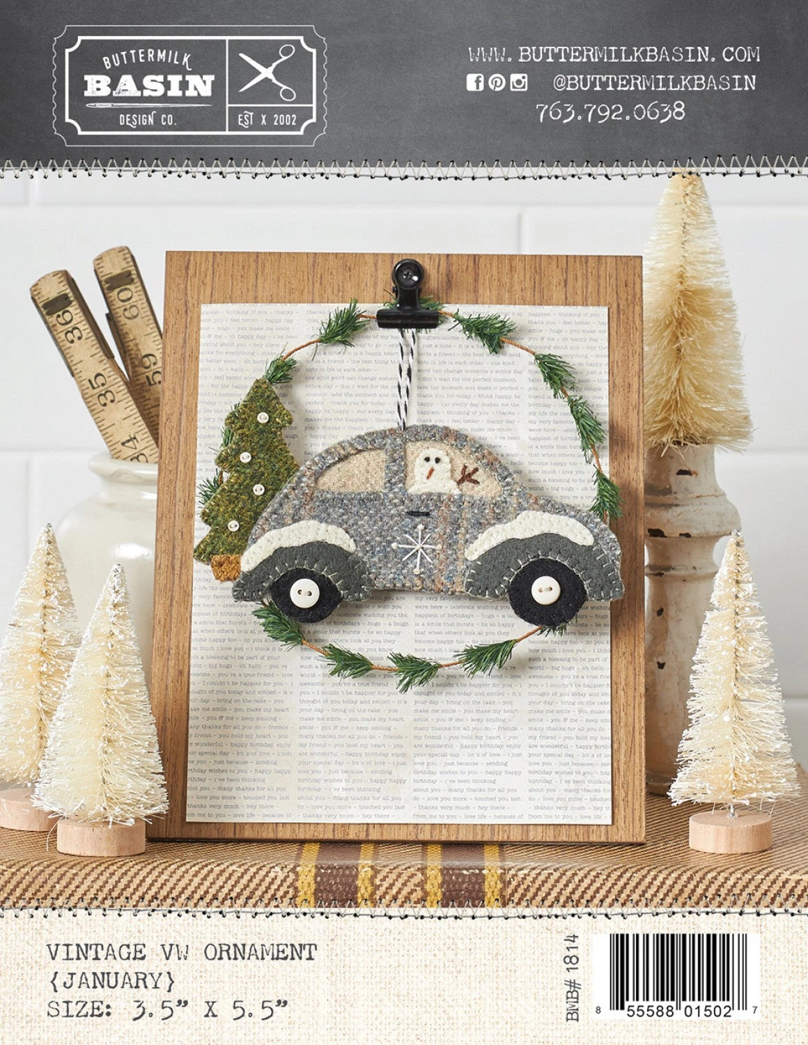 Make this vintage monthly VW to display on a tree or hand from a shelf! The monthly designs are hauling goods for each month! 3-1/2in X 5-1/2in